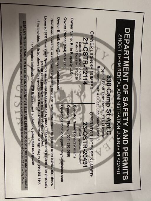 Located in the vibrant Warehouse District, you’ll be close to: -The French Quarter (walkable distance). -The Convention Center and Downtown attractions. -Renowned restaurants, bars, and art galleries. Perfect for travelers looking to enjoy historic architecture, modern amenities, and unbeatable walkability, all in one unforgettable stay. Licensed short-term rental — Permit #20-CSTR-26432.