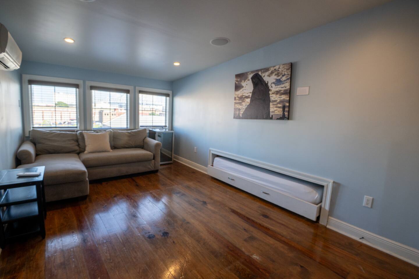 Guests have exclusive access to the entire apartment, including: • A third-floor gallery balcony overlooking the courtyard and skyline. • A shared first-floor courtyard (pictured) • Free parking for one vehicle in the private lot behind the building