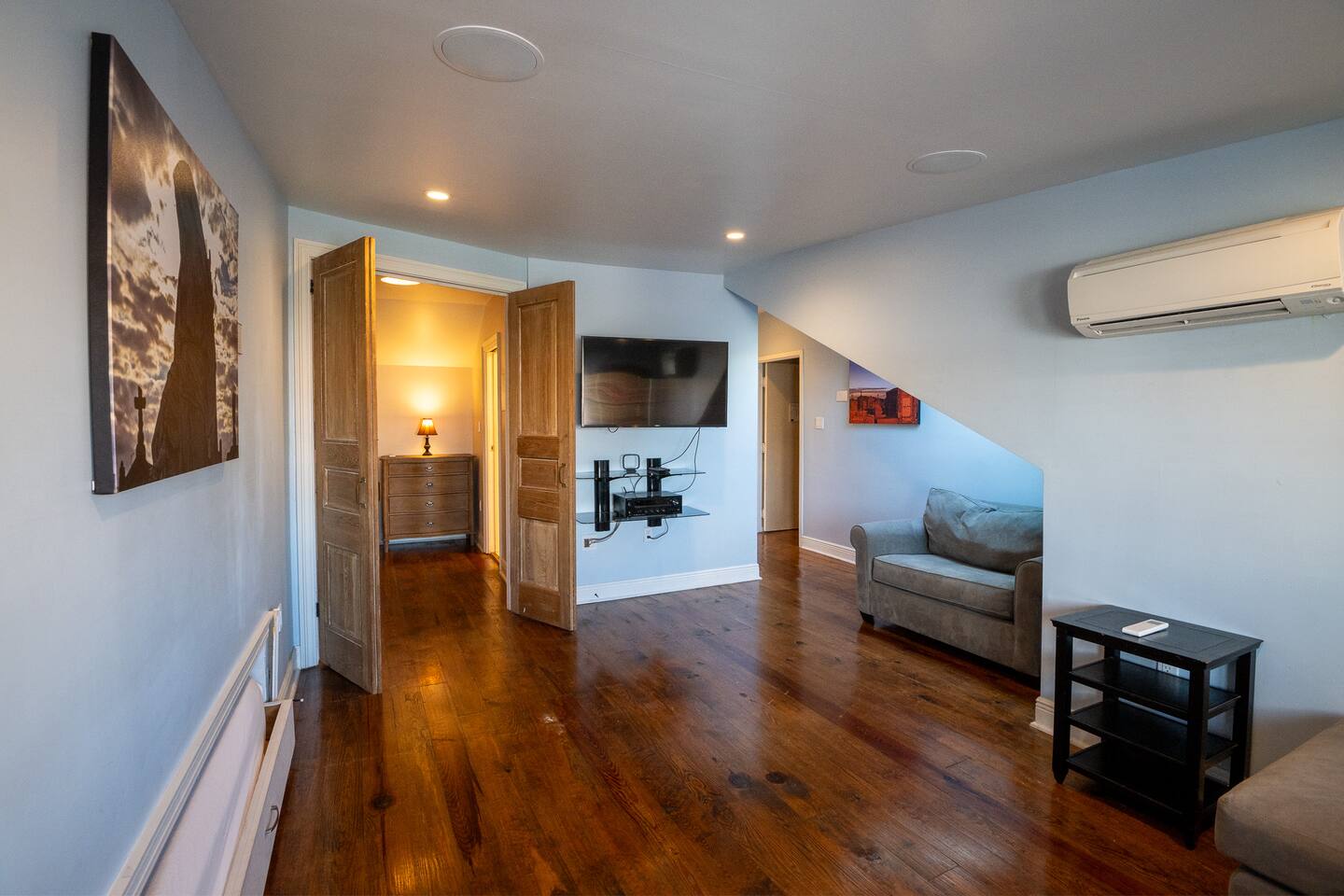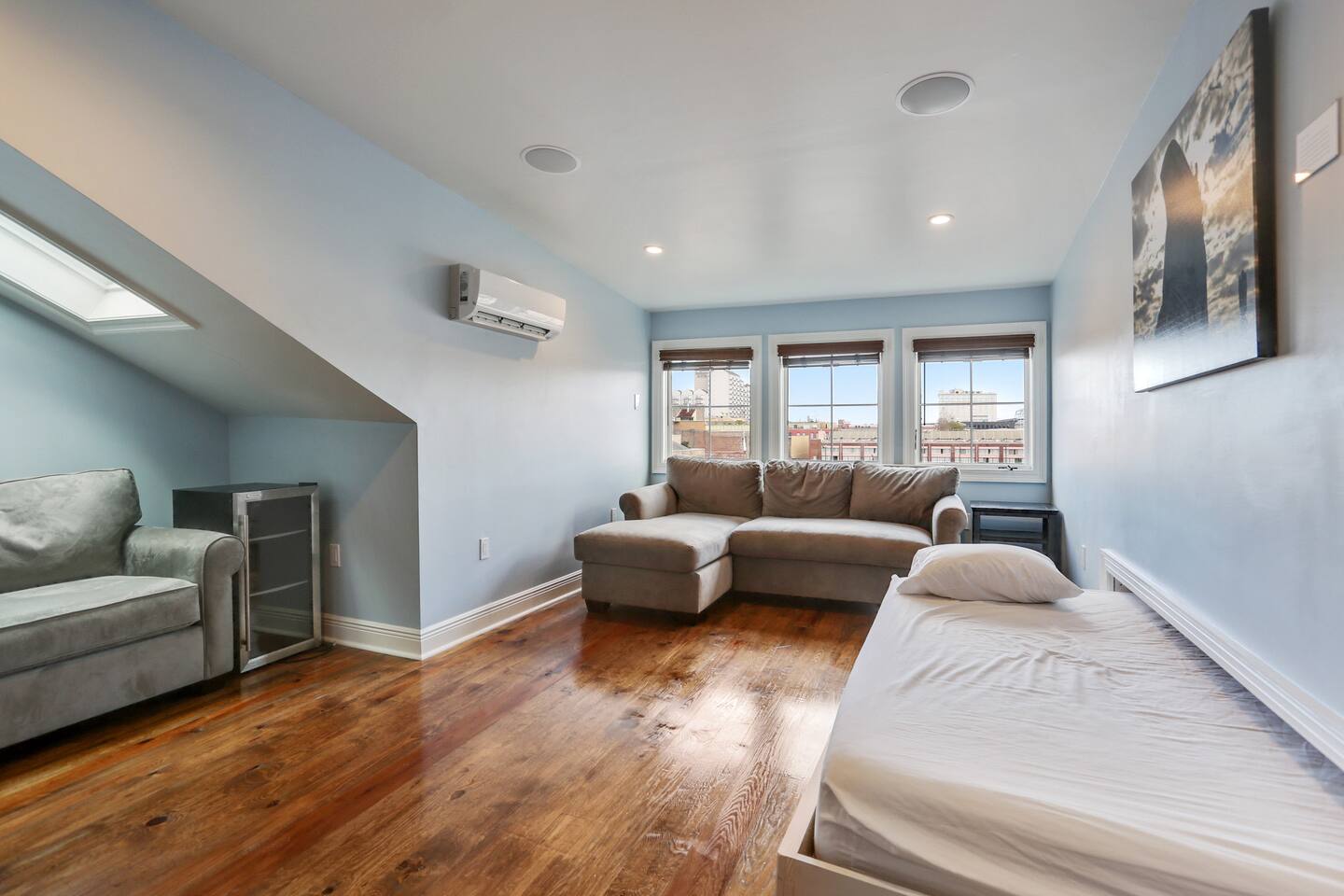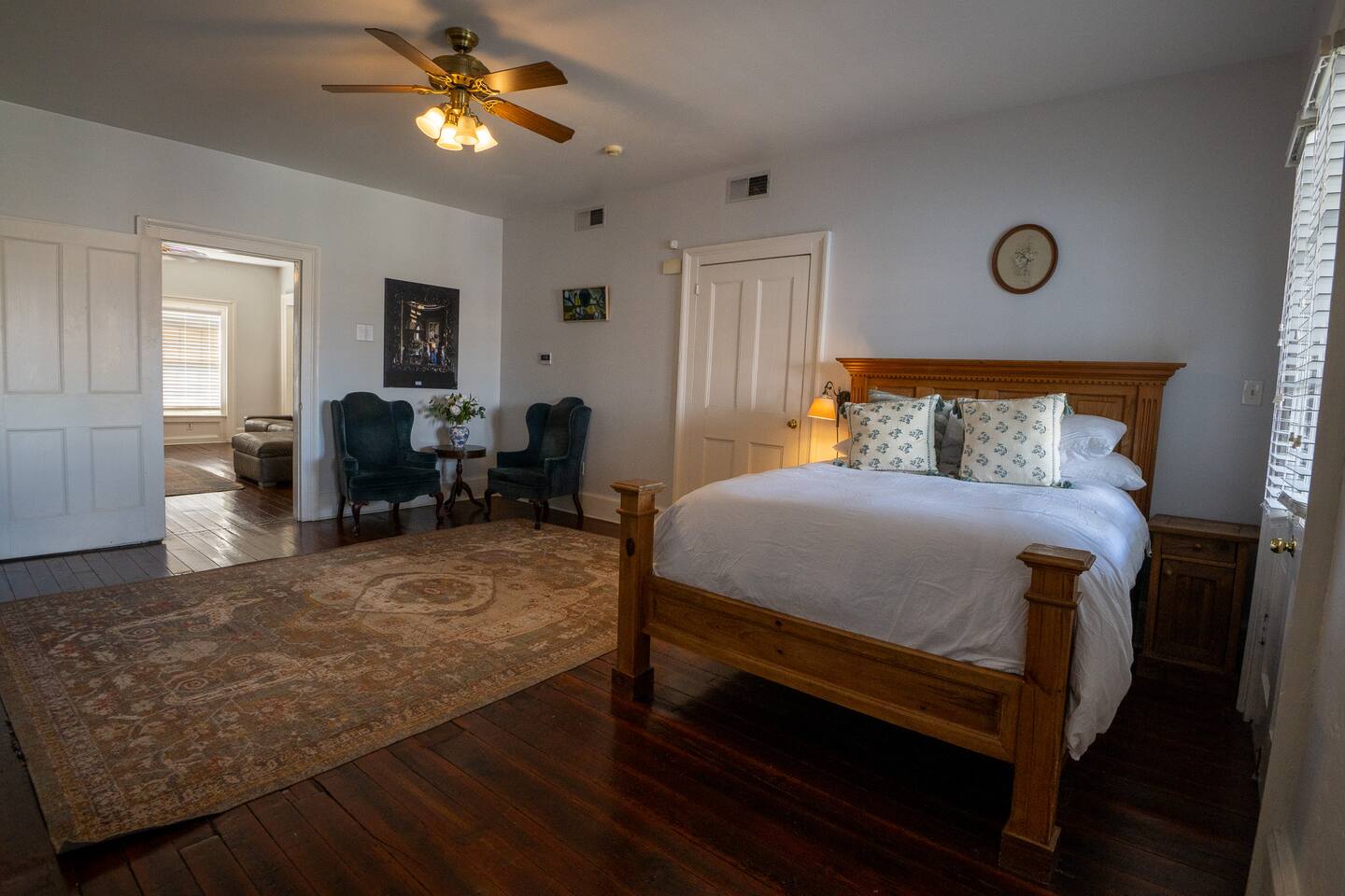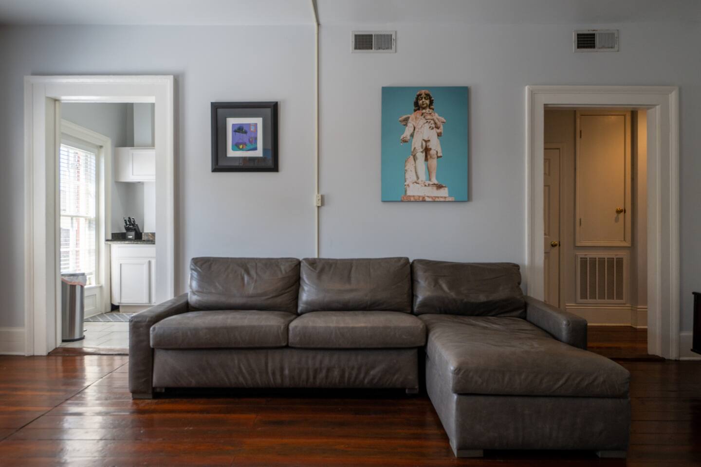 Stay in this beautifully renovated 1840s townhouse that blends historic charm with modern style. Located in the Warehouse District of Camp Street near Downtown, the French Quarter, and the Convention Center, this 3-bedroom, 3-bath home is ideal for families or groups. Spread across the 3rd and 4th floors (stairs required), it features exposed brick, hardwood floors, a full kitchen, a comfortable lounge, and a private balcony with courtyard and city views.