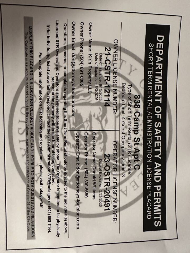 Located in the vibrant Warehouse District of Camp Street, you’ll be close to: • The French Quarter (walkable distance). • The Convention Center and Downtown attractions. • Renowned restaurants, bars, and art galleries. Our Camp Street property puts you only 4 blocks from Emeril’s, the world-famous two-star Michelin restaurant by Chef Emeril Lagasse in New Orleans’ Warehouse District. Food lovers from around the world travel here for its elegant tasting menus and unforgettable flavors — and you’ll be close enough to walk! Perfect for travelers looking to enjoy historic architecture, modern amenities, and unbeatable walkability, all in one unforgettable stay. Licensed short-term rental — Permit #20-CSTR-26432.
