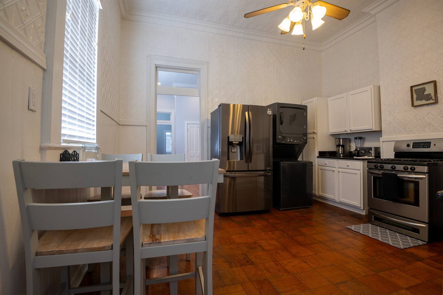 Step into the charm of historic New Orleans in this beautifully renovated half of a raised double shotgun around Mid-City. With over 3,000 sq. ft., this spacious home comfortably accommodates large groups. Located just 2.3 miles from the French Quarter, you can walk or bike along the scenic Jean Lafitte Greenway or hop on a streetcar or take an Uber. Excellent restaurants, local cafes, and amenities are all within easy walking distance, making it the perfect base for your New Orleans adventure.