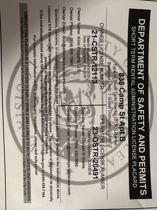 Housed in a historic townhouse once owned by prominent New Orleanians, this apartment combines architectural heritage with modern comfort. Inside, you’ll find: -Bright and airy living room with elegant décor and high ceilings -Fully equipped kitchen with everything you need for dining in -Cozy dining area perfect for morning coffee or an intimate meal -Serene bedroom featuring a California king memory foam bed and an additional queen bed for extra guests -Modern bathroom with updated fixtures and fresh linens -Private balcony overlooking the courtyard, perfect for unwinding after a day exploring the city Whether you’re here for business or leisure, this apartment offers a peaceful retreat close to all the action.