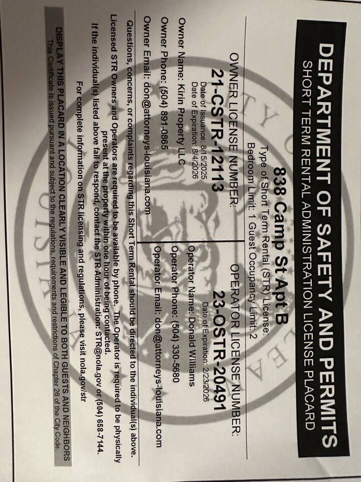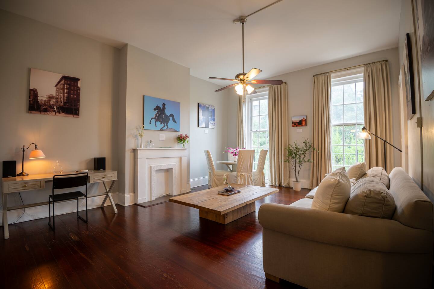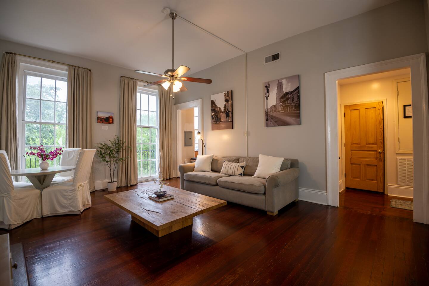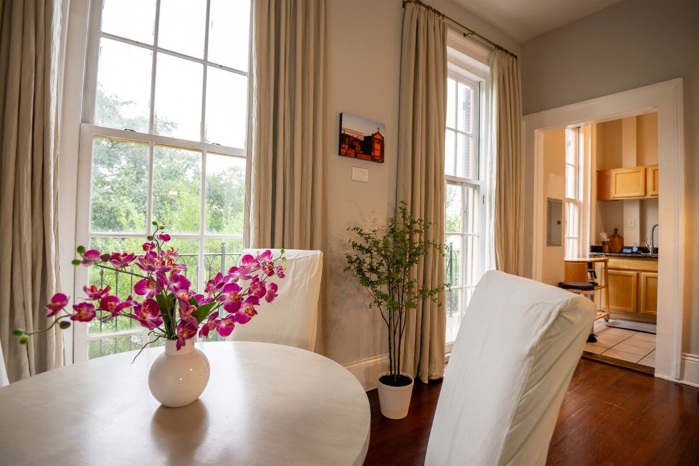 Housed in a historic townhouse once owned by prominent New Orleanians, this apartment combines architectural heritage with modern comfort. Inside, you’ll find: • Bright and airy living room with elegant décor and high ceilings • Fully equipped kitchen with everything you need for dining in • Cozy dining area perfect for morning coffee or an intimate meal • Serene bedroom featuring a California king memory foam bed and an additional queen bed for extra guests • Modern bathroom with updated fixtures and fresh linens • Private balcony overlooking the courtyard, perfect for unwinding after a day exploring the city Whether you’re here for business or leisure, this apartment offers a peaceful retreat close to all the action.