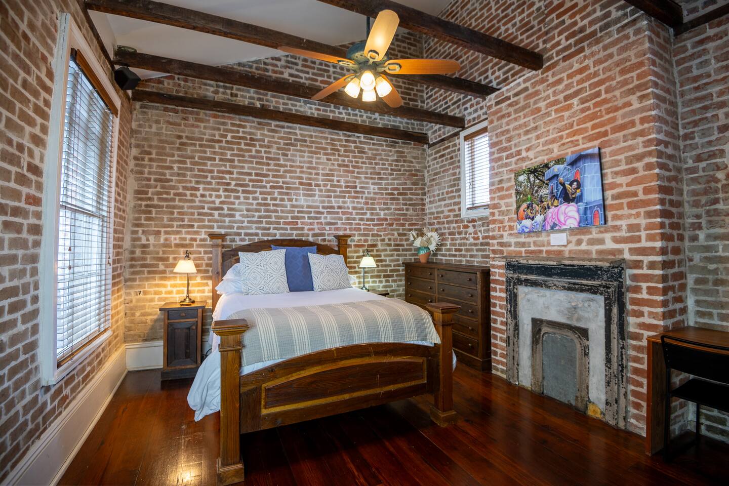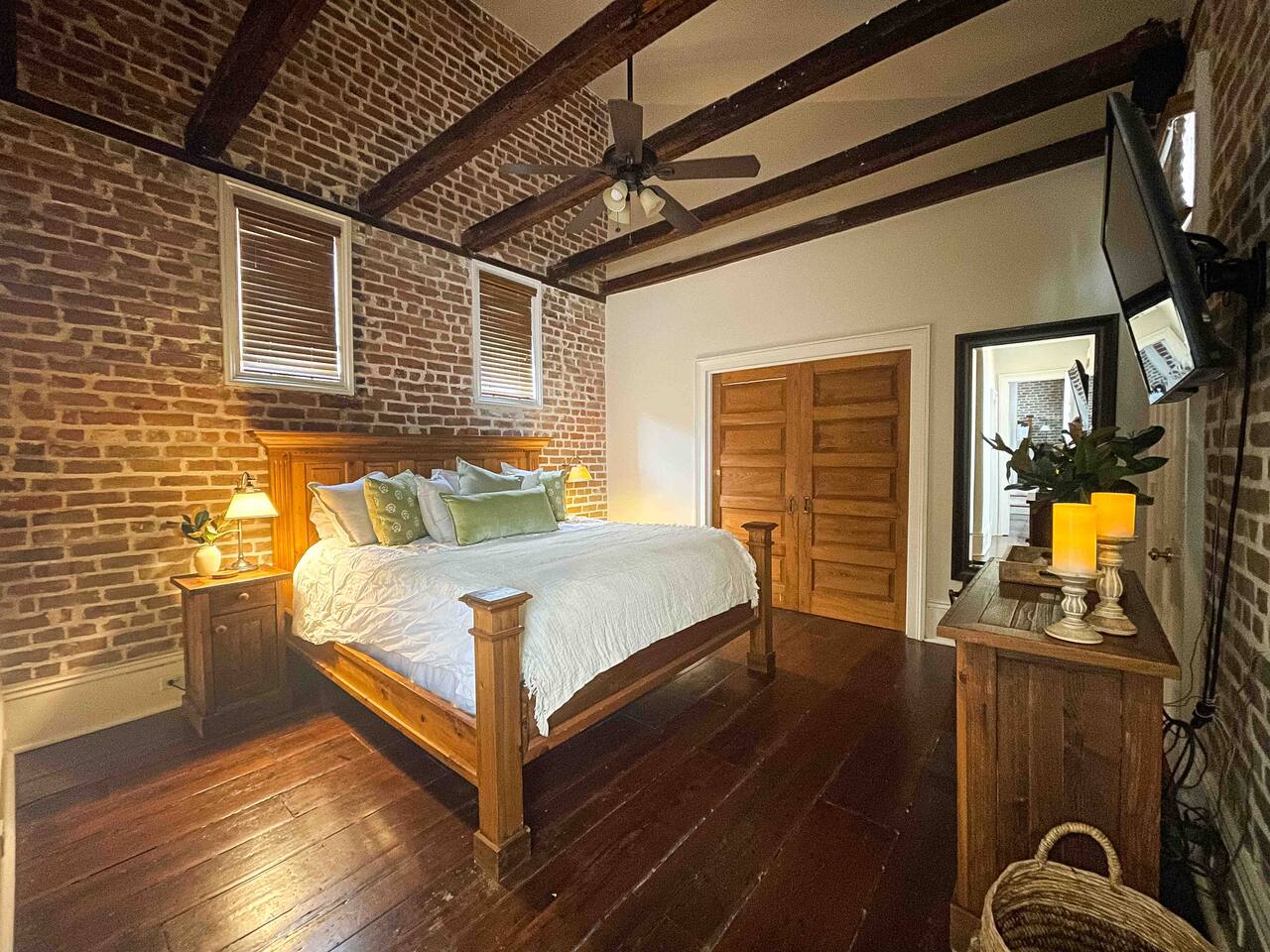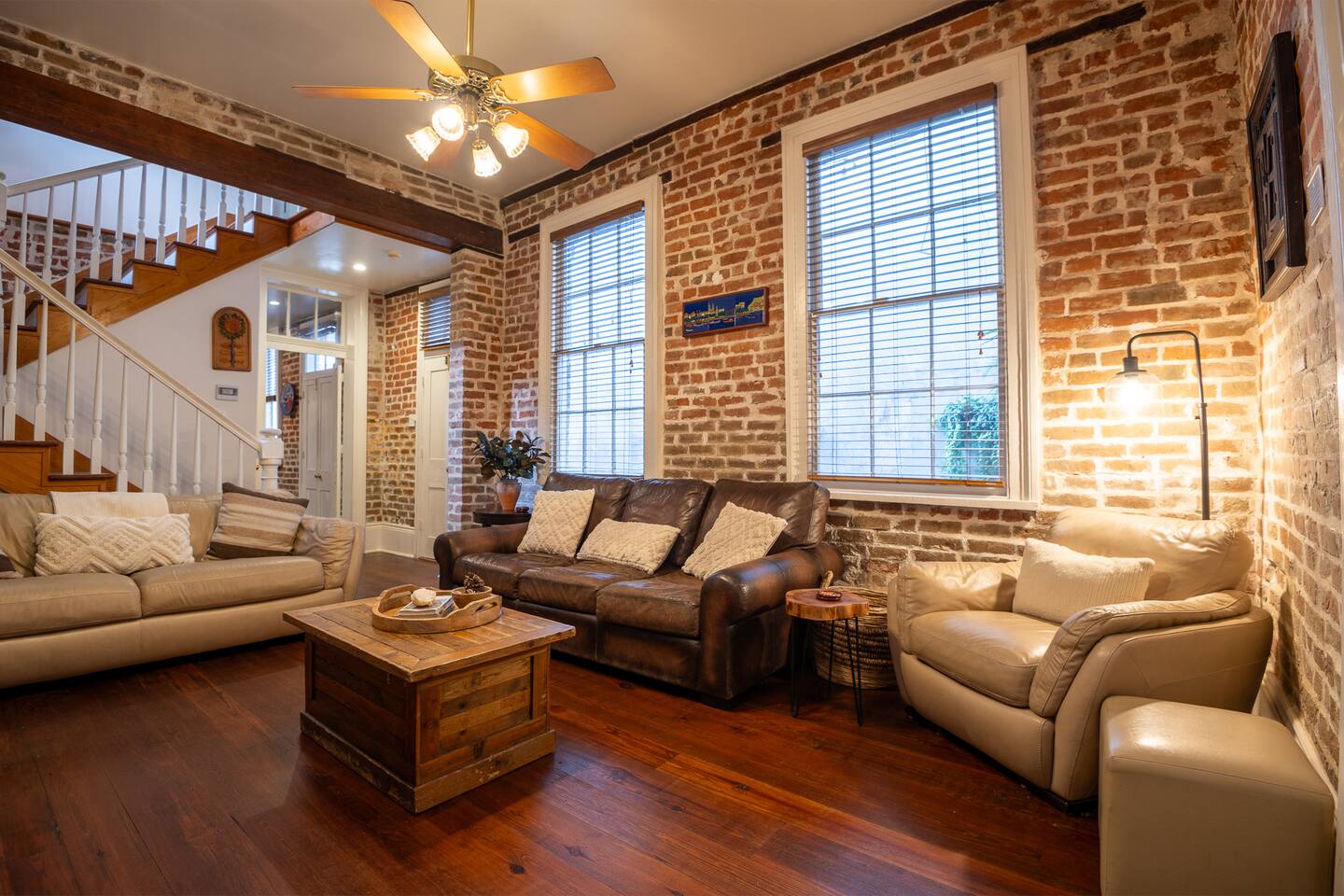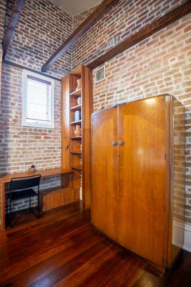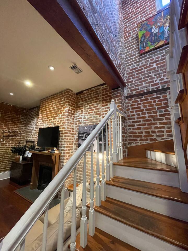 Stay in a beautifully restored historic New Orleans townhouse designed by famed architect James Harrison Dakin, also known for St. Patrick’s Cathedral nearby. Featuring exposed brick walls, high ceilings, and wood beam details, the home reflects classic 19th-century charm. Located in the Warehouse District, it’s within walking distance of the French Quarter, Downtown, and the Convention Center, with top dining, nightlife, and attractions.