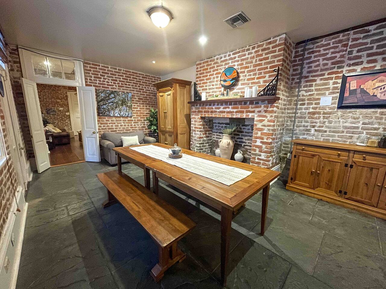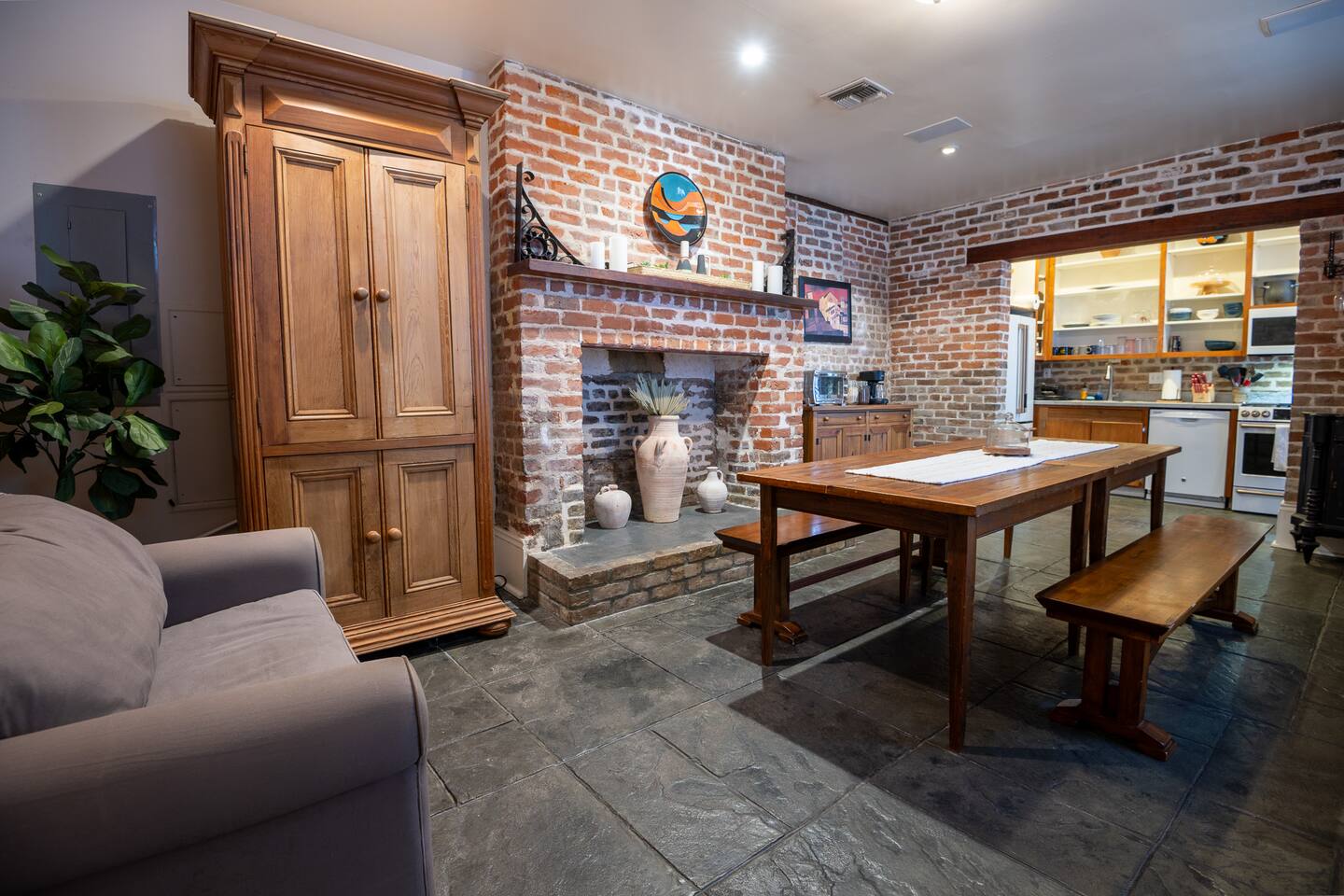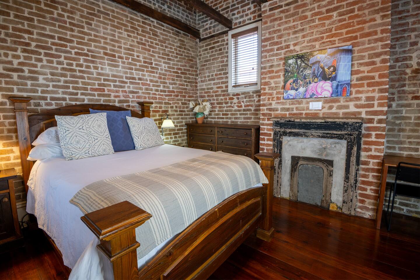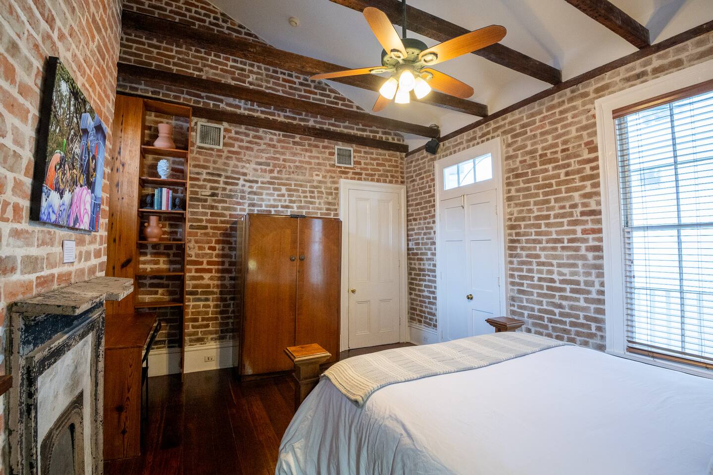 Stay in a beautifully restored historic New Orleans townhouse designed by famed architect James Harrison Dakin, also known for St. Patrick’s Cathedral nearby. Featuring exposed brick walls, high ceilings, and wood beam details, the home reflects classic 19th-century charm. Located in the Warehouse District, it’s within walking distance of the French Quarter, Downtown, and the Convention Center, with top dining, nightlife, and attractions.