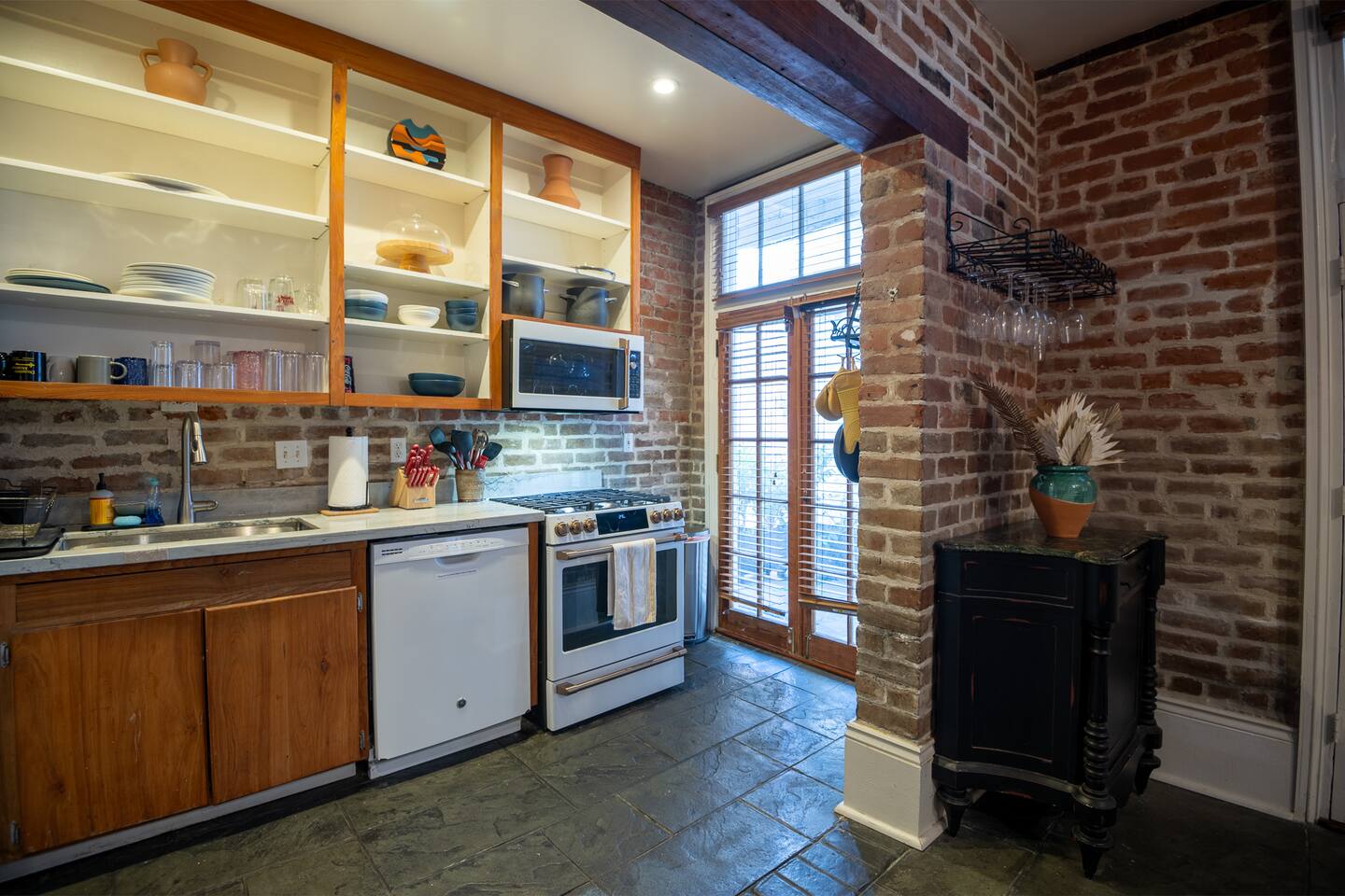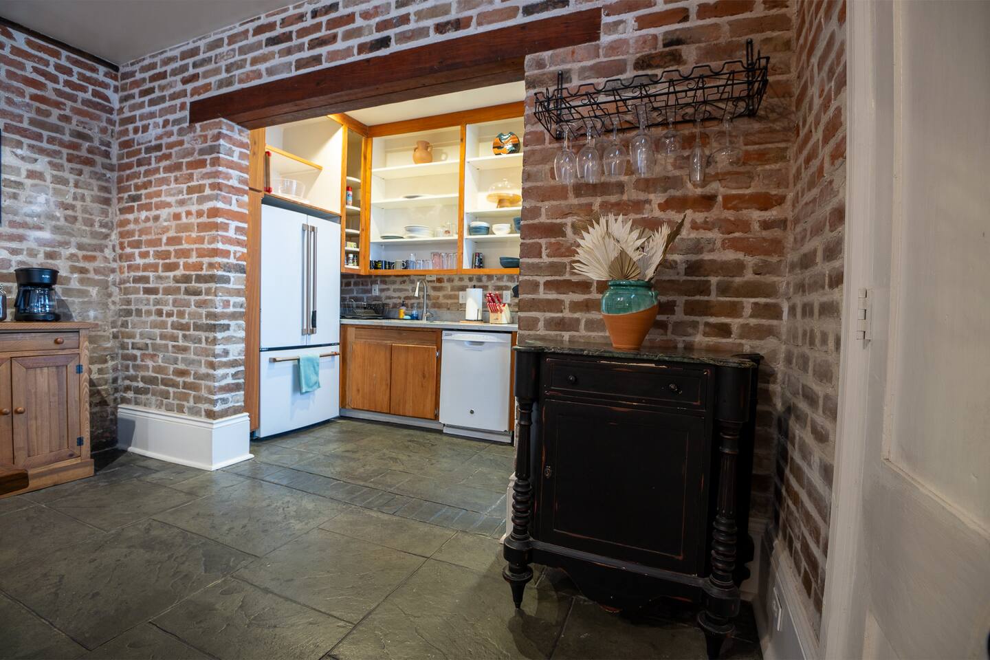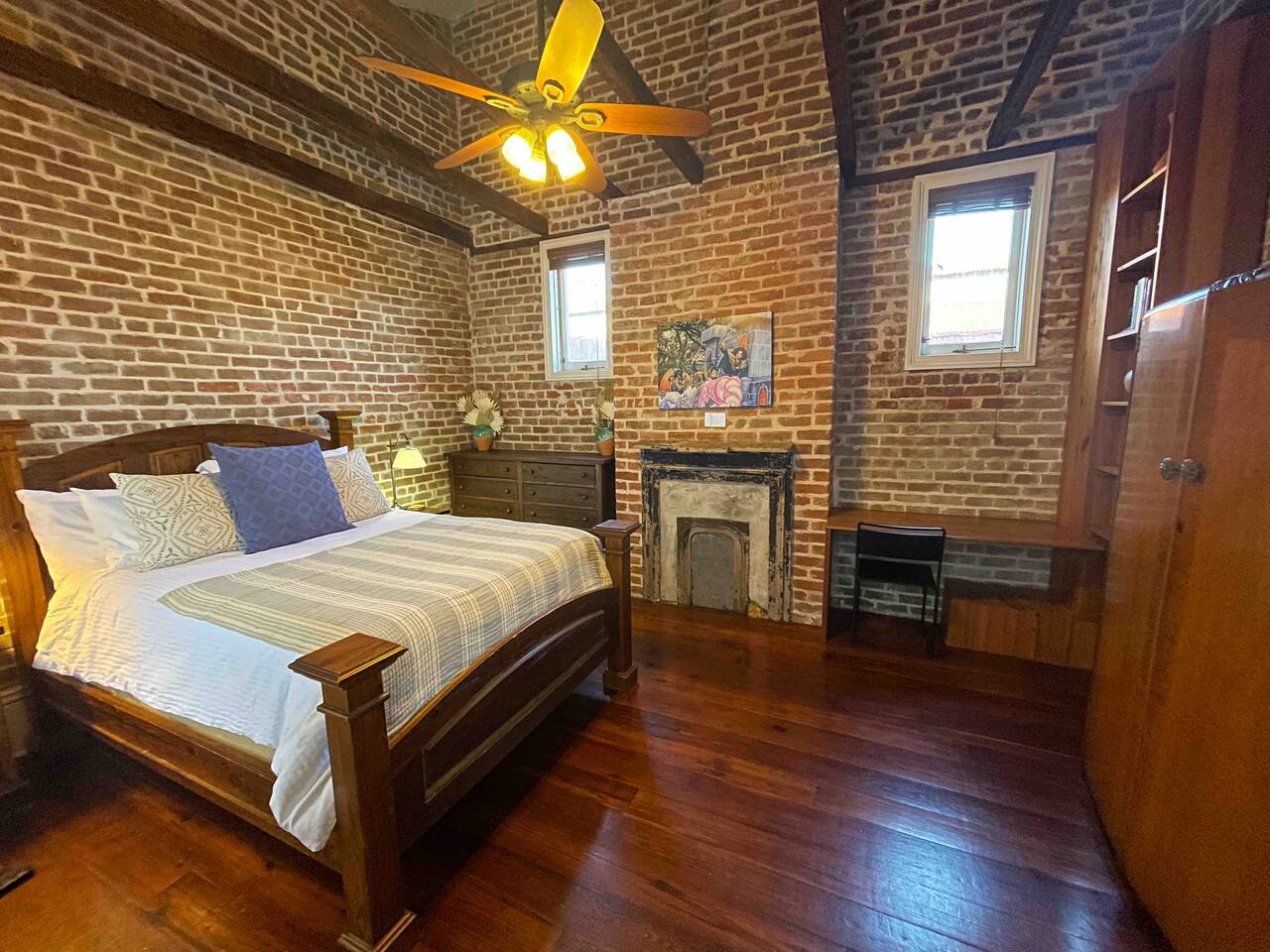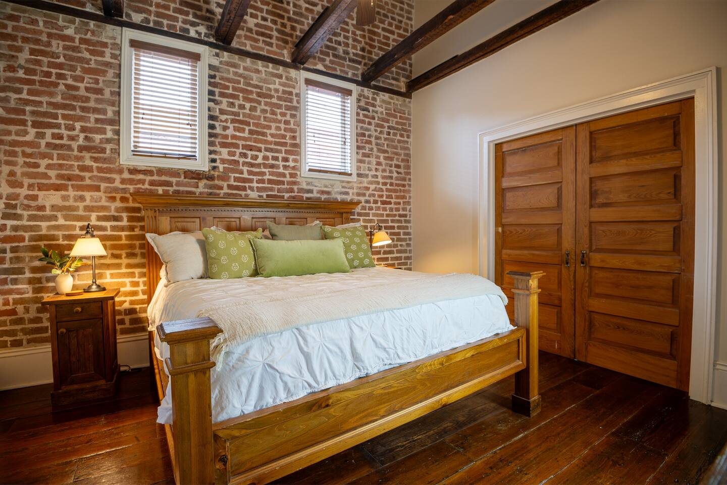 Stay in a beautifully restored historic New Orleans townhouse designed by famed architect James Harrison Dakin, also known for St. Patrick’s Cathedral nearby. Featuring exposed brick walls, high ceilings, and wood beam details, the home reflects classic 19th-century charm. Located in the Warehouse District, it’s within walking distance of the French Quarter, Downtown, and the Convention Center, with top dining, nightlife, and attractions.