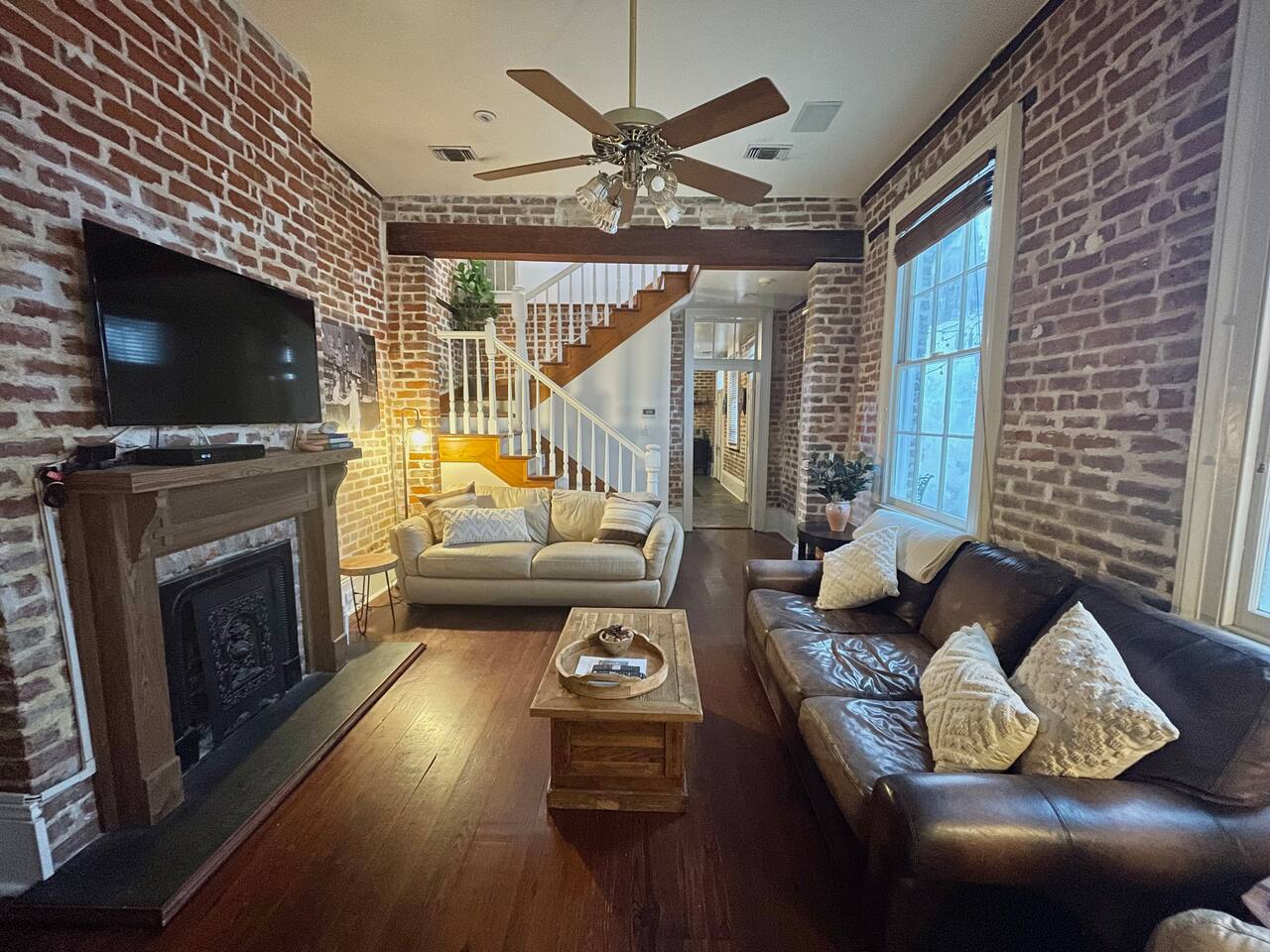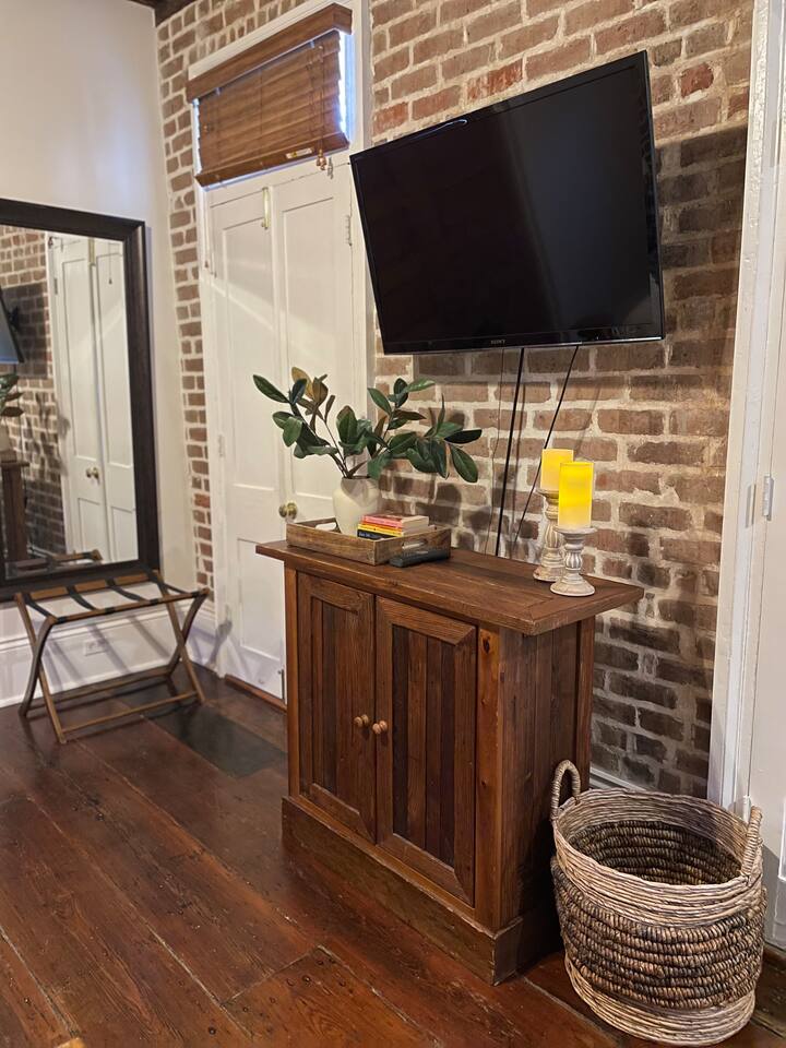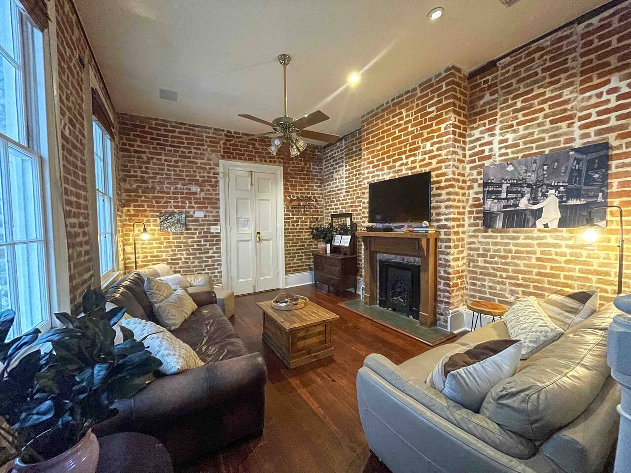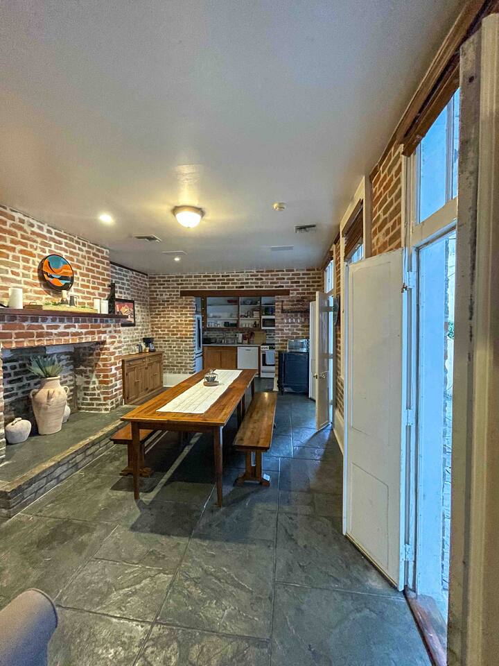 Built in the 1840s, this townhouse at 838 Camp Street is one of the few surviving examples of early New Orleans rowhouses. Thoughtfully restored, it retains much of its original character while offering modern comfort and convenience. Inside, you’ll find: • Spacious living areas with classic New Orleans architectural details. • Exposed brick and hardwood floors throughout. • High ceilings on the main floor and vaulted ceilings with exposed beams in the upstairs bedrooms. • Comfortable sleeping arrangements ideal for families or groups. • Fully equipped kitchen and cozy dining area. • Private second-floor gallery balcony and first-floor courtyard, perfect for relaxing after exploring the city. The property’s rich history includes past owners such as cotton merchants, attorneys, and Margaret Robinson Barnett, who ran the famous Dixie Stove Works from this very address, once the South’s largest manufacturer of stove parts.
