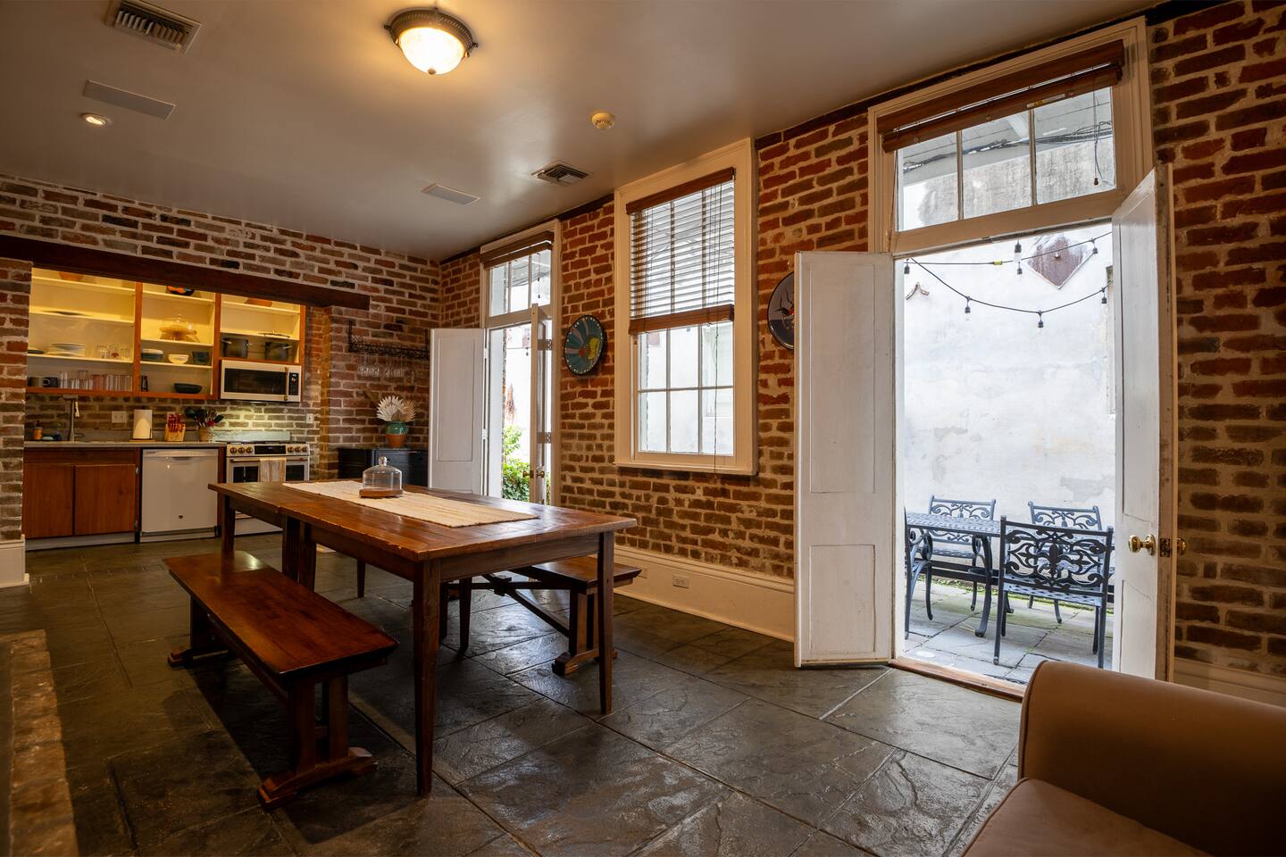 Guests have exclusive access to the entire townhouse, including: -The second-floor gallery balcony overlooking Camp Street. -A first-floor courtyard (pictured) perfect for morning coffee or evening wine. -Free private parking for one vehicle in the lot behind the building.