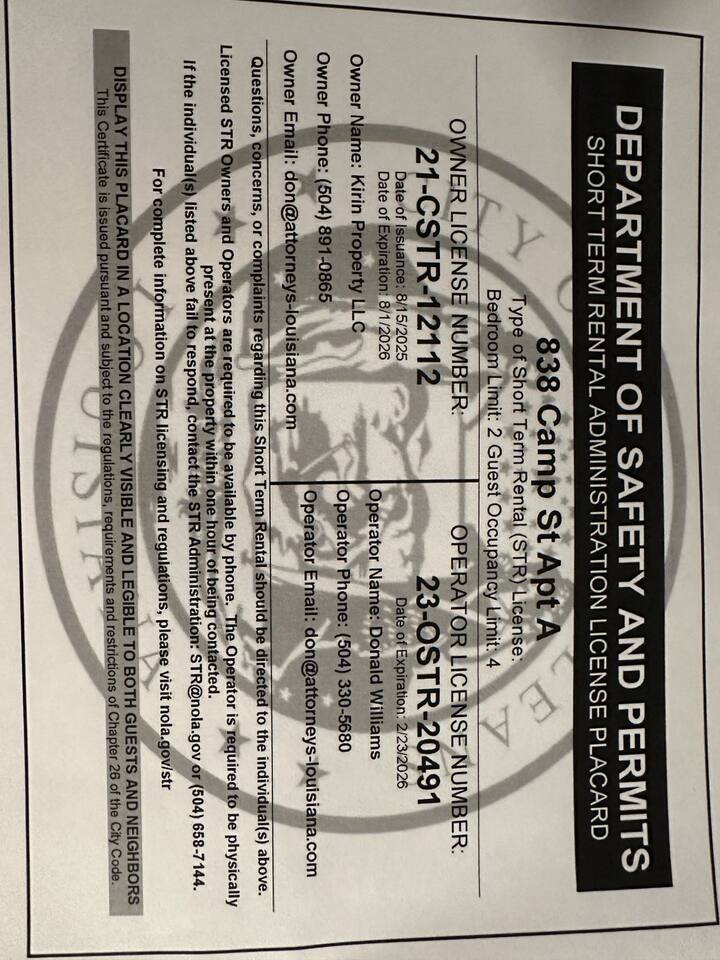 The Warehouse District is one of New Orleans’ most desirable neighborhoods, rich in history, architecture, and culture. From here, you can easily: • Walk to the French Quarter, Convention Center, and Downtown NOLA. • Explore top-rated restaurants, cafes, museums, and art galleries. • Experience the best of historic charm and modern living all in one location. Our Camp Street property puts you only 4 blocks from Emeril’s, the world-famous two-star Michelin restaurant by Chef Emeril Lagasse in New Orleans’ Warehouse District. Food lovers from around the world travel here for its elegant tasting menus and unforgettable flavors — and you’ll be close enough to walk! Fully licensed and legal short-term rental — Permit #20-STR-26425.